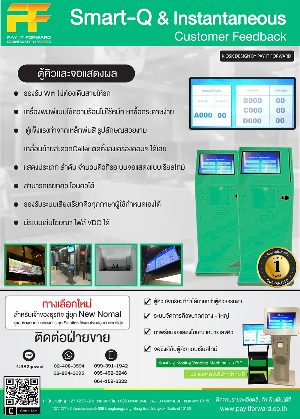 - เป็นตู้ระบบจองคิว Queue kiosk พร้อมจอแสดงผลแบบ Touch Sceen
