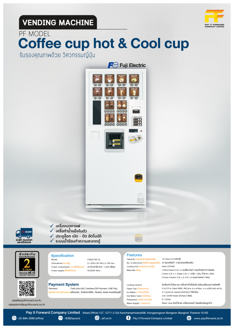 ตู้จำหน่ายกาแฟสดหยอดเหรียญ ตู้กาแฟหยอดเหรียญ Fuji ตู้ขายกาแฟหยอดเหรียญ ตู้จำหน่ายสินค้าอัตโนมัติ Vending Machine ตู้ขายของหยอดเหรียญ รับประกันสินค้า 1 ปี โทร.028943095