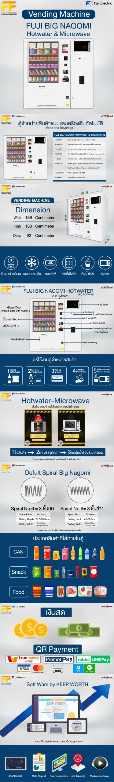 Vending Machine ตู้จำหน่ายสินค้าอัตโนมัติหยอดเหรียญ Fuji รุ่น Big Nagomi แบบเกลียวปล่อยสินค้า ไม่มีลิฟท์รับสินค้า ตู้จำหน่ายสินค้าอัตโนมัติ สำหรับขายขนมและเครื่องดื่มในตู้เดียวกันได้ สอบถามเพิ่มเติม โทร.028943095 , 091-1563555 , 095-6463342 , 095-4923246