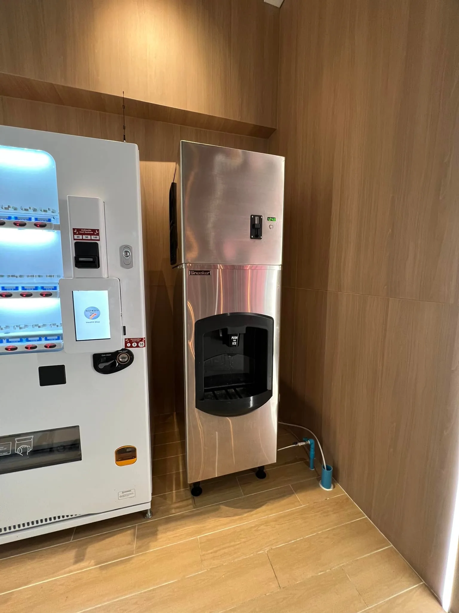 ความจุถังน้ำแข็ง 50 กิโลกรัม จะสามารถบรรจุแก้วขนาด 300 มล. ได้ 250 แก้ว อัตราการผลิตสามารถทำน้ำแข็ง 6 กิโลกรัม ต่อชั่วโมง ผลิตได้ตลอด 24 ชั่วโมง