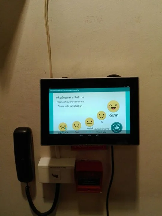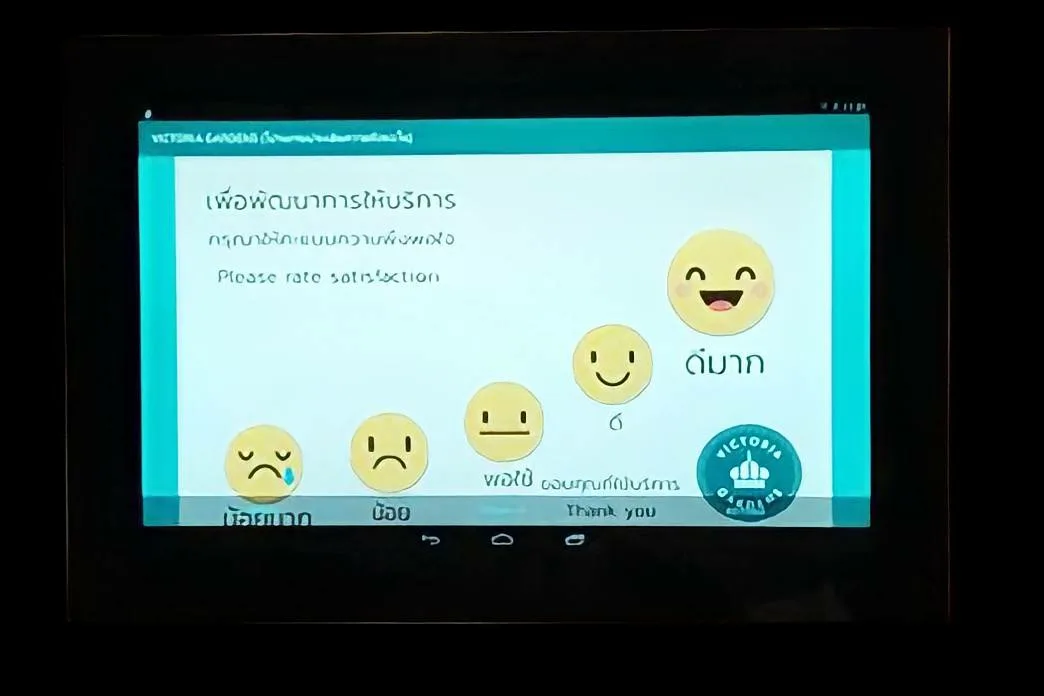 อุปกรณ์เครื่องสำหรับให้ลูกค้ากดประเมินความพึงพอใจ ออกแบบบนระบบปฎิบัติการ android เพื่อต้นทุนที่ต่ำ