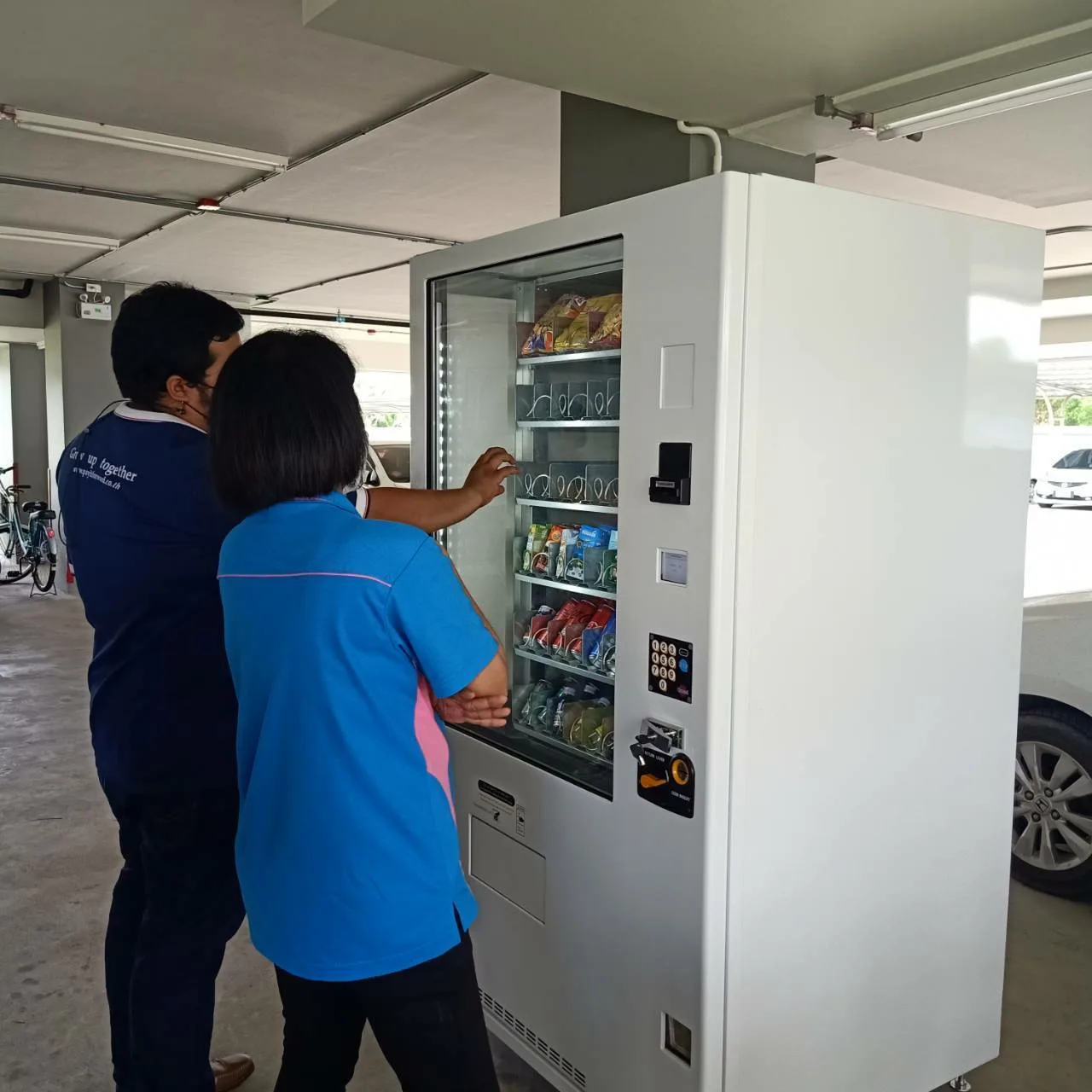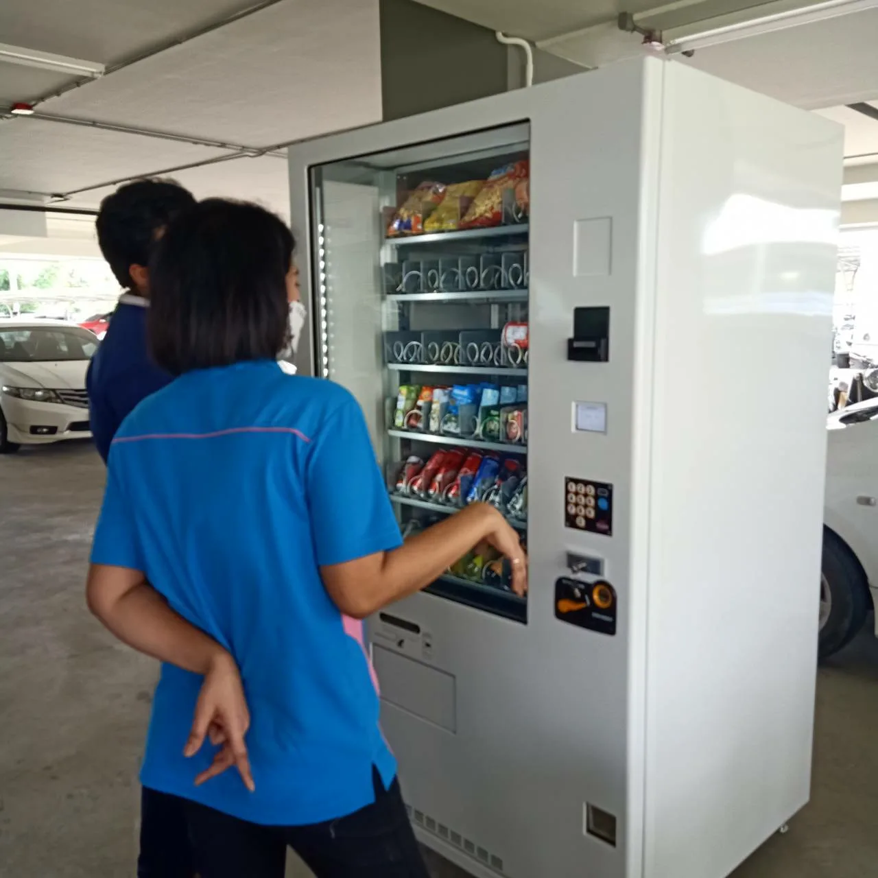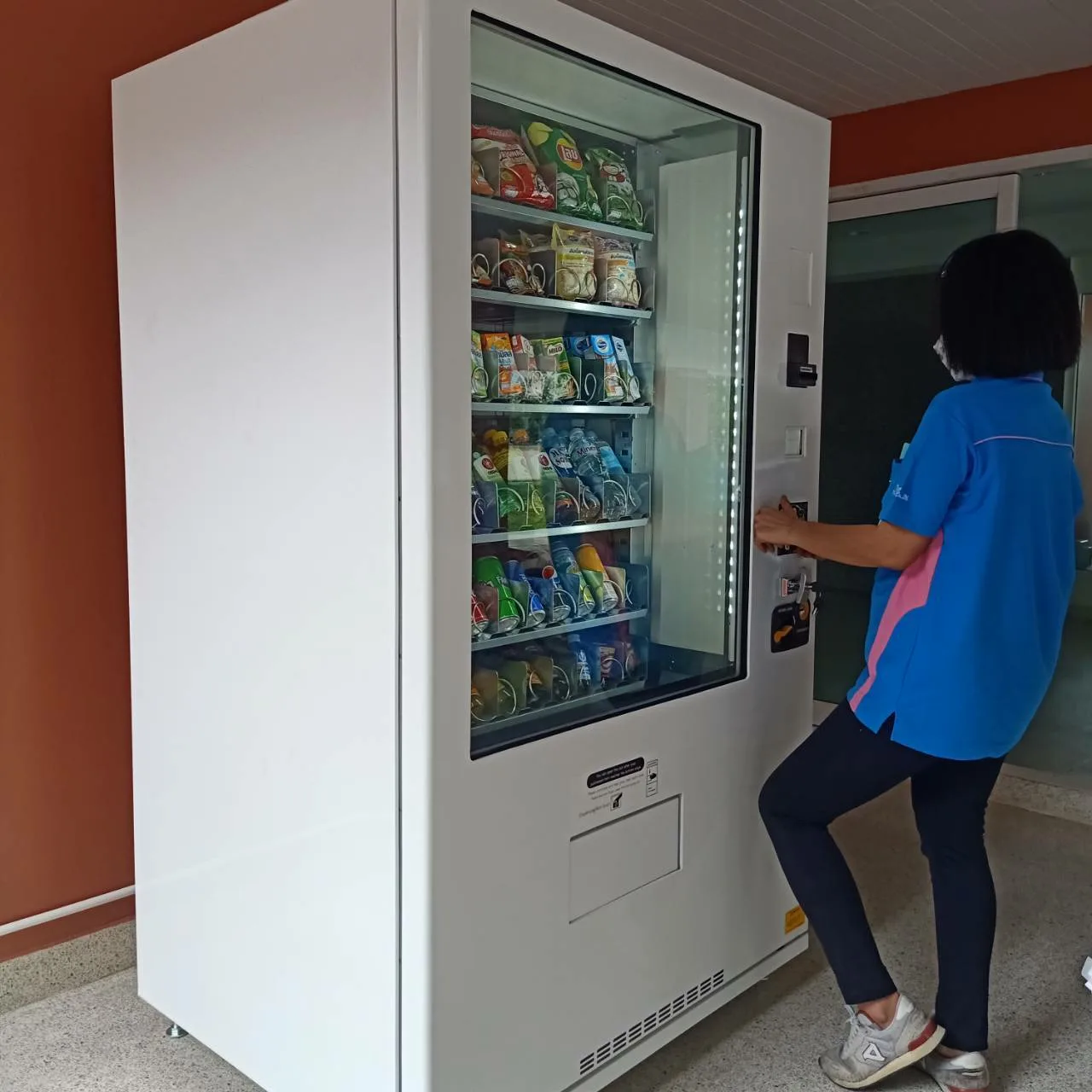 แบบเกลียวปล่อยสินค้า ไม่มีลิฟท์รับสินค้า ตู้จำหน่ายสินค้าอัตโนมัติ สำหรับขายขนมและเครื่องดื่มในตู้เดียวกันได้