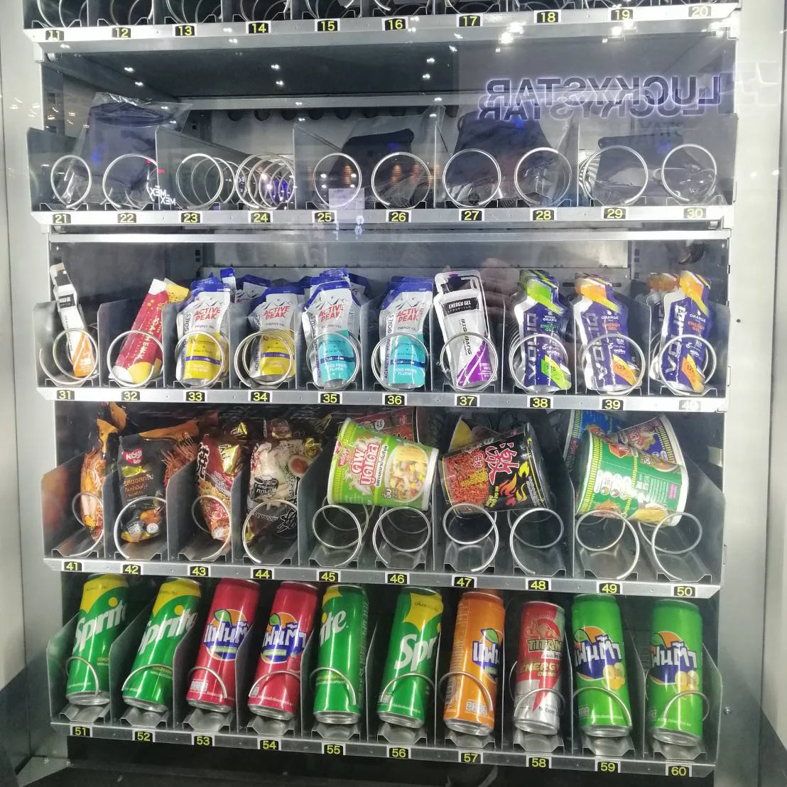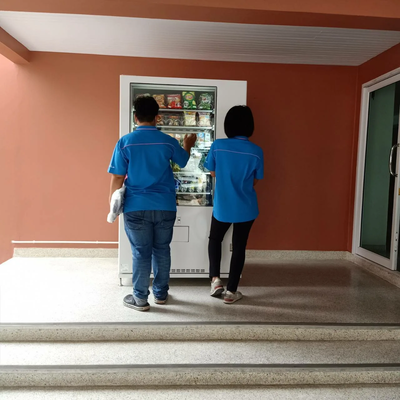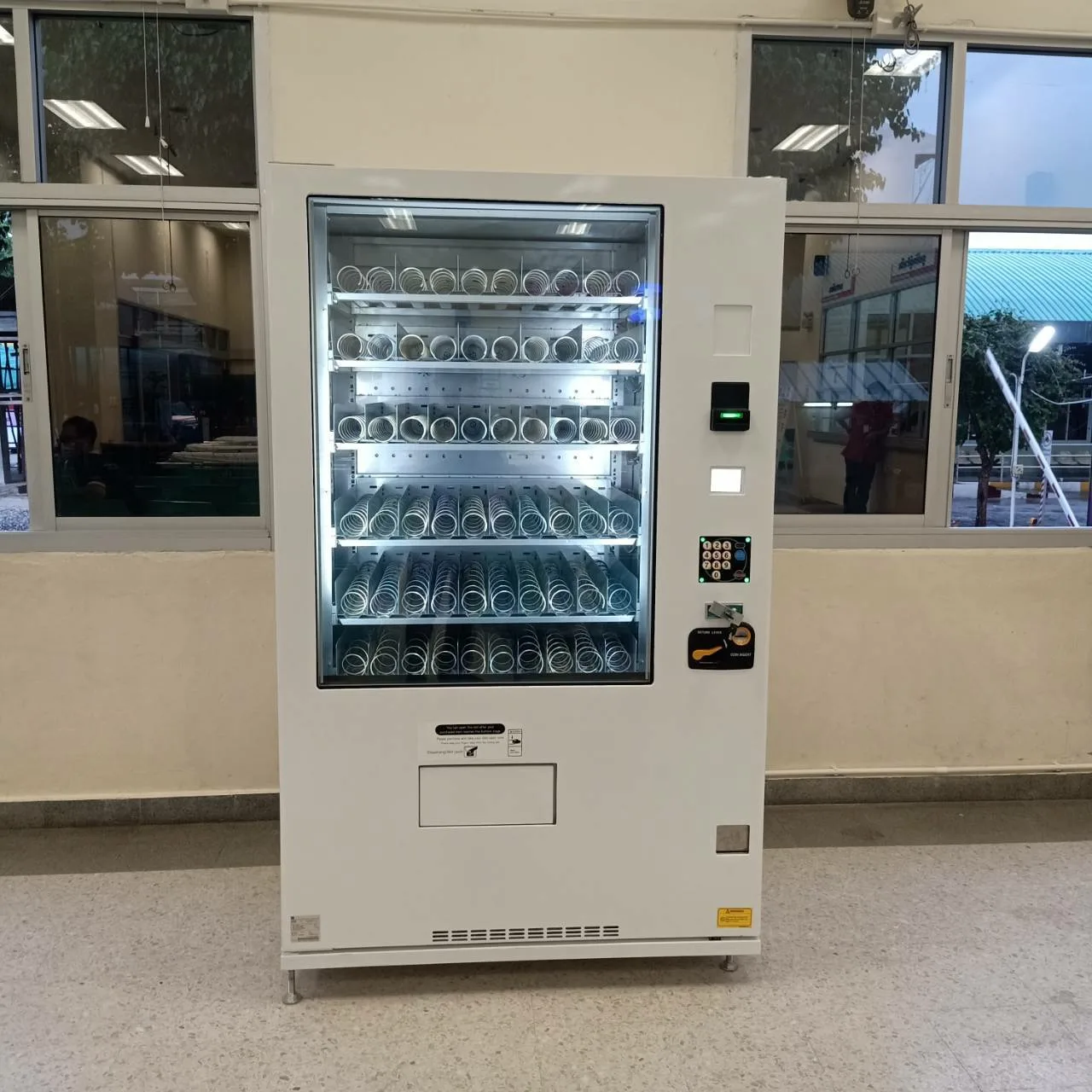 แบบเกลียวปล่อยสินค้า ไม่มีลิฟท์รับสินค้า ตู้จำหน่ายสินค้าอัตโนมัติ สำหรับขายขนมและเครื่องดื่มในตู้เดียวกันได้