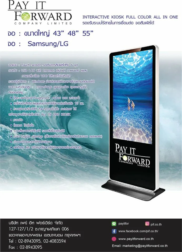 Pay It Forward.Co.,Ltd เป็นผู้ผลิต และจำหน่าย จอโฆษณาระบบดิจิตอลไซเนท